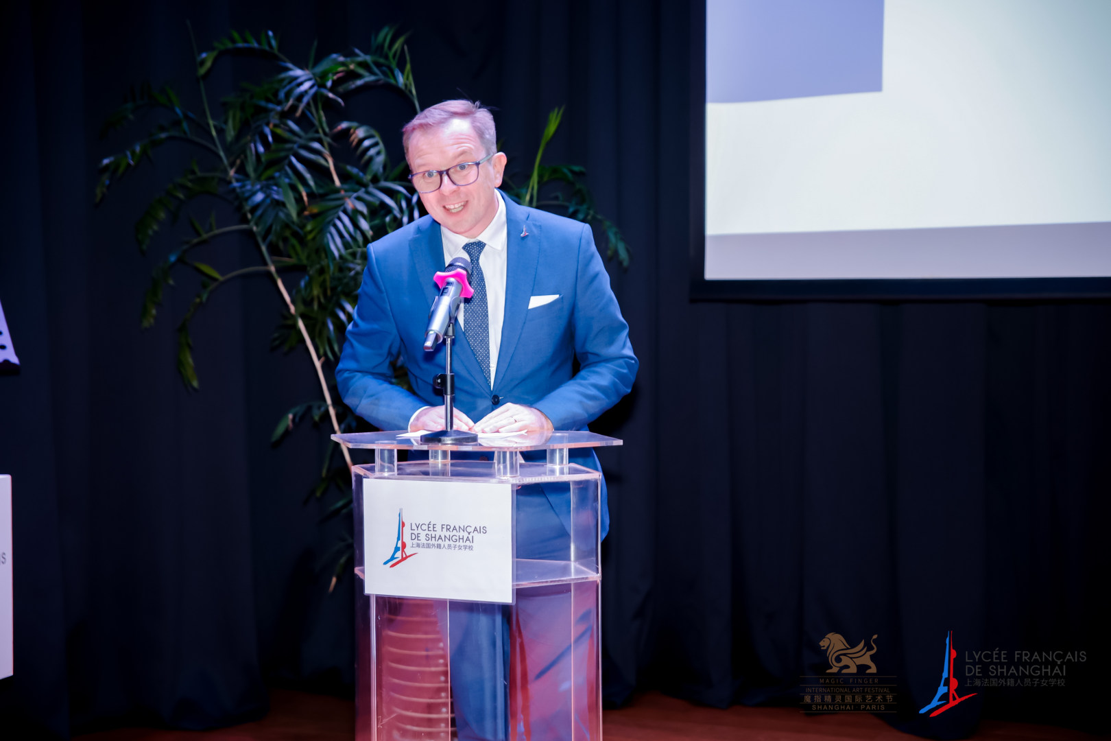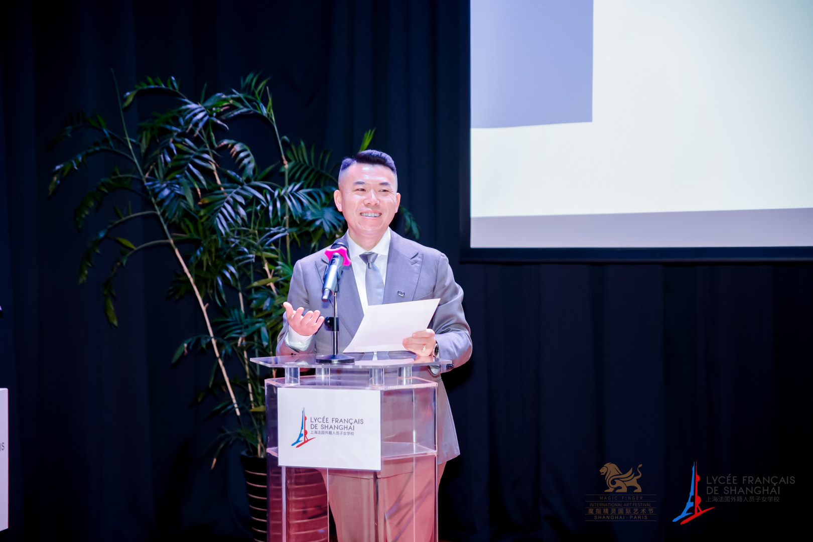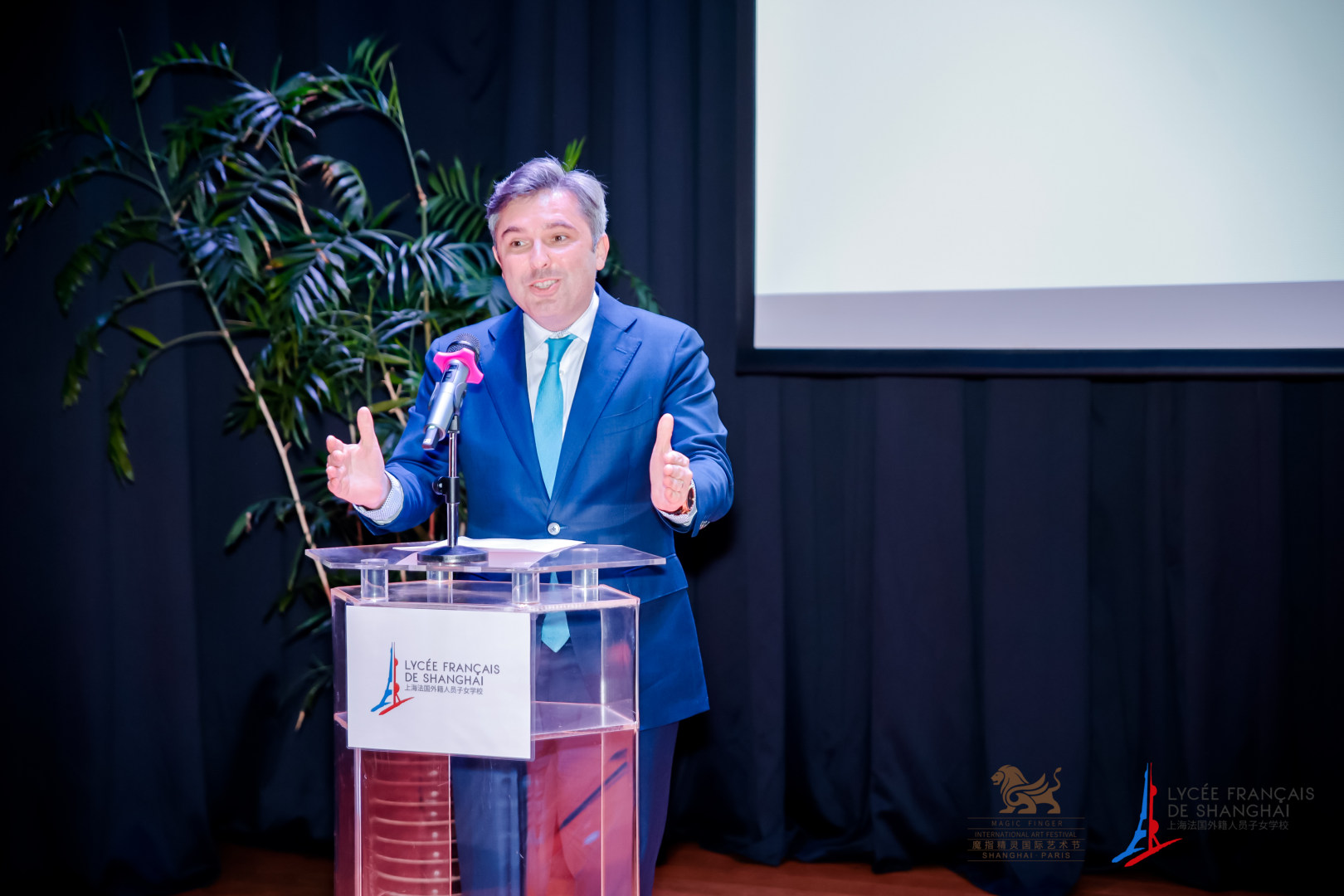 Le 13 novembre, la "Station de Shanghai du Festival international Magic Finger - Le Pont de l'art franco - chinois" a été lancée ici. Avant le début de l'événement, M. Dominique Girard, Consul général de France à Shanghai, M. Grégory Payen, Directeur général de l'école française de Shanghai, M. Liu Jian, Président chinois du Festival international Magic Finger, et Mme Li Yi, Directrice artistique du festival et soprano résidant en France, ont tous prononcé un discours.