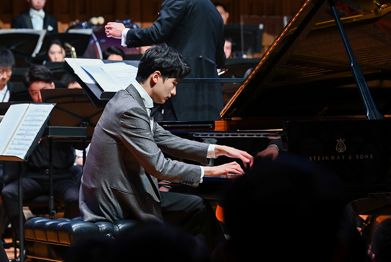 Le soir du 9 février, les lumières ont diminué et le concert hall était plongé dans le silence. Tang Juechen, vêtu d'un habit de cérémonie, a joué avec M. Xia Xiaotang, célèbre chef d'orchestre chinois, et l'Orchestre symphonique d'Xi'an la célèbre œuvre de Gershwin, Rhapsodie en bleu. Cette œuvre combine la musique classique et le style jazz. Tang Juechen, grâce à ses techniques exceptionnelles et à sa compréhension profonde de la musique, a créé une parfaite résonance avec l'orchestre. Les cordes, les cuivres et le piano se sont entremêlés pour créer un son riche et merveilleux, mettant en valeur le charme passionné et dynamique de l'œuvre, et remportant des applaudissements tonitruants du public.